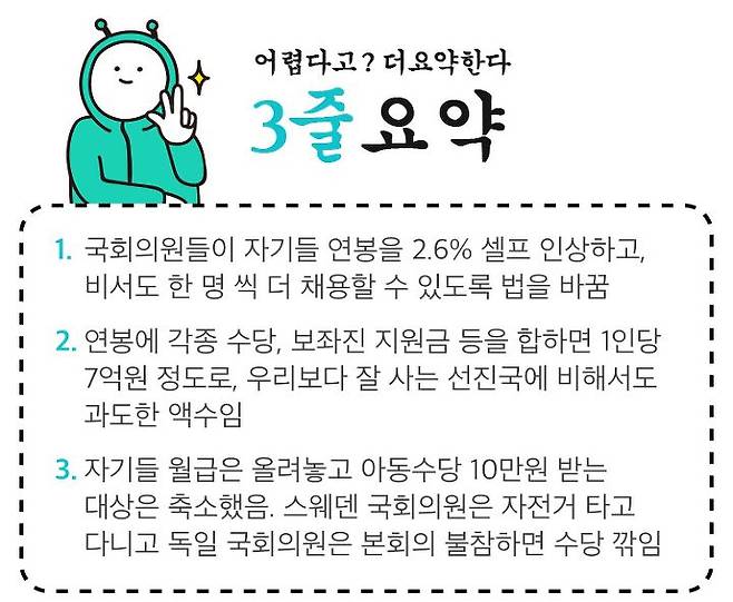 자기 연봉 올리고 아동수당 줄인 국회의원들